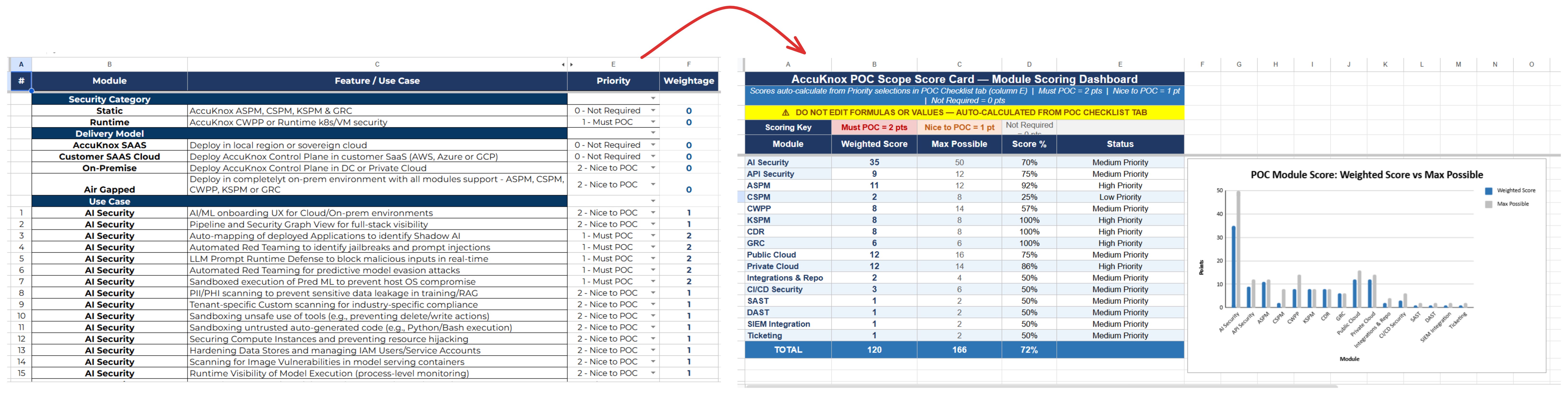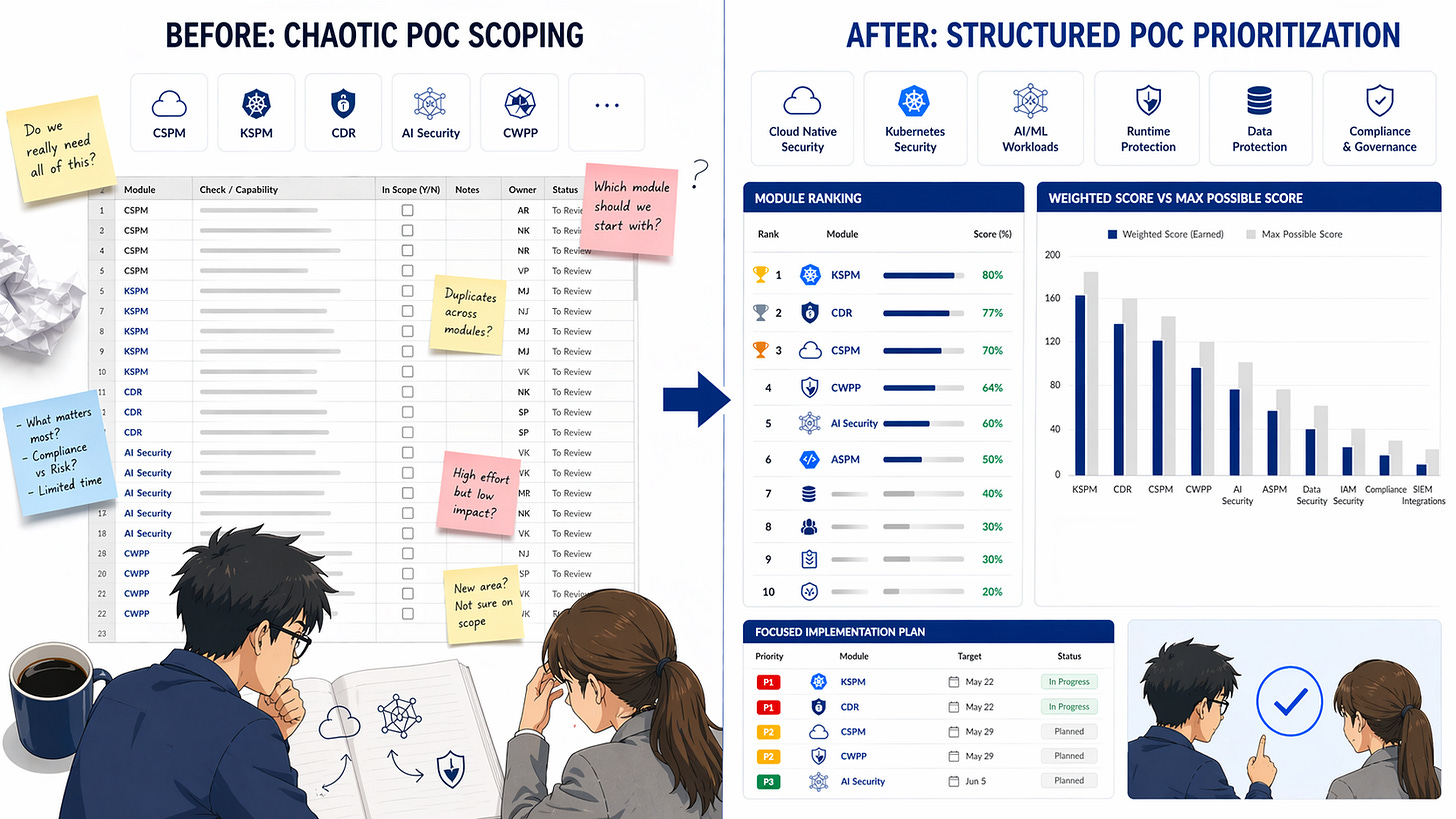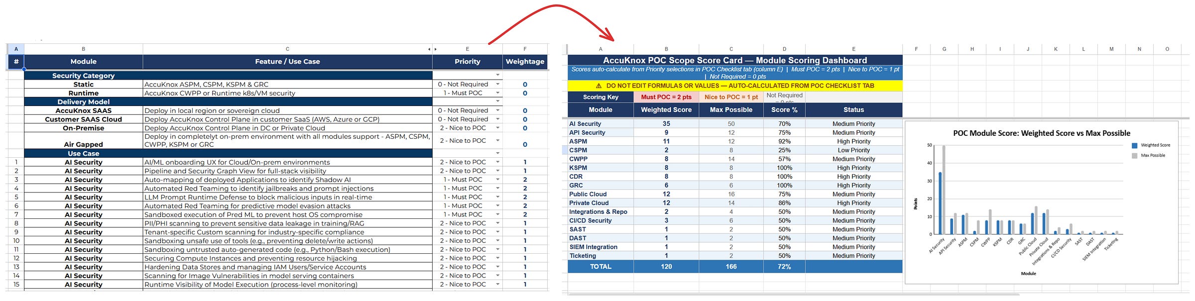 I converted our POC checklist into a weighted scoring engine in Excel.