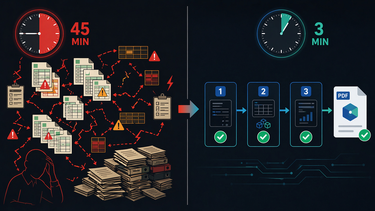 The spreadsheet was not failing because people were careless. It was the wrong tool. Spreadsheets can handle straightforward math. They struggle when eight linked variables drive legal, currency, formatting, and governance-sensitive output that must be auditable later.