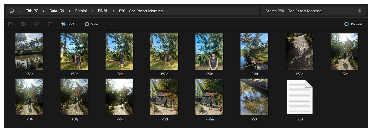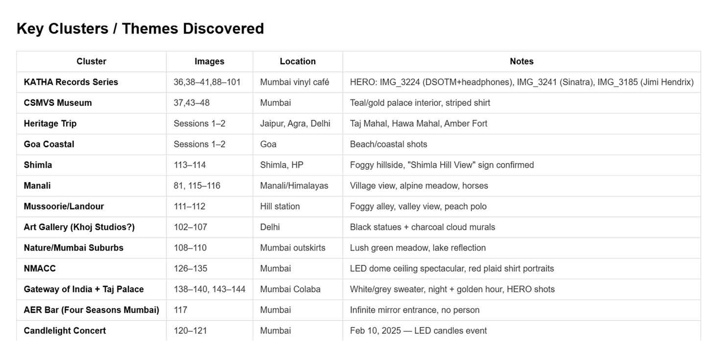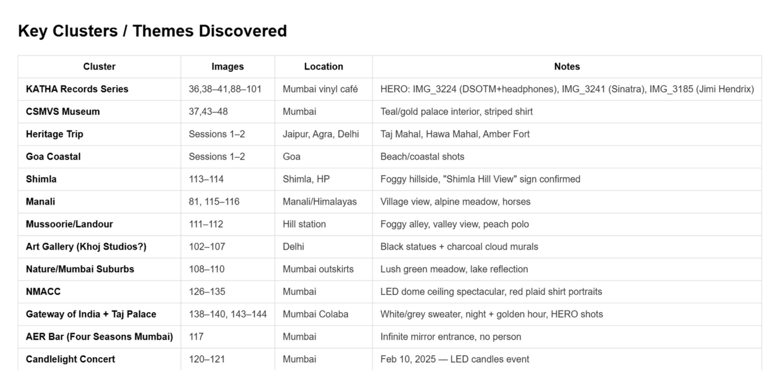 Each post got a name. Not a filename. A name. P41 — Kerala — Backwaters + Garage Café + Coast. That level of specificity came from going back and forth on titles until they reflected what was actually in the frame, not what I wished was in the frame.