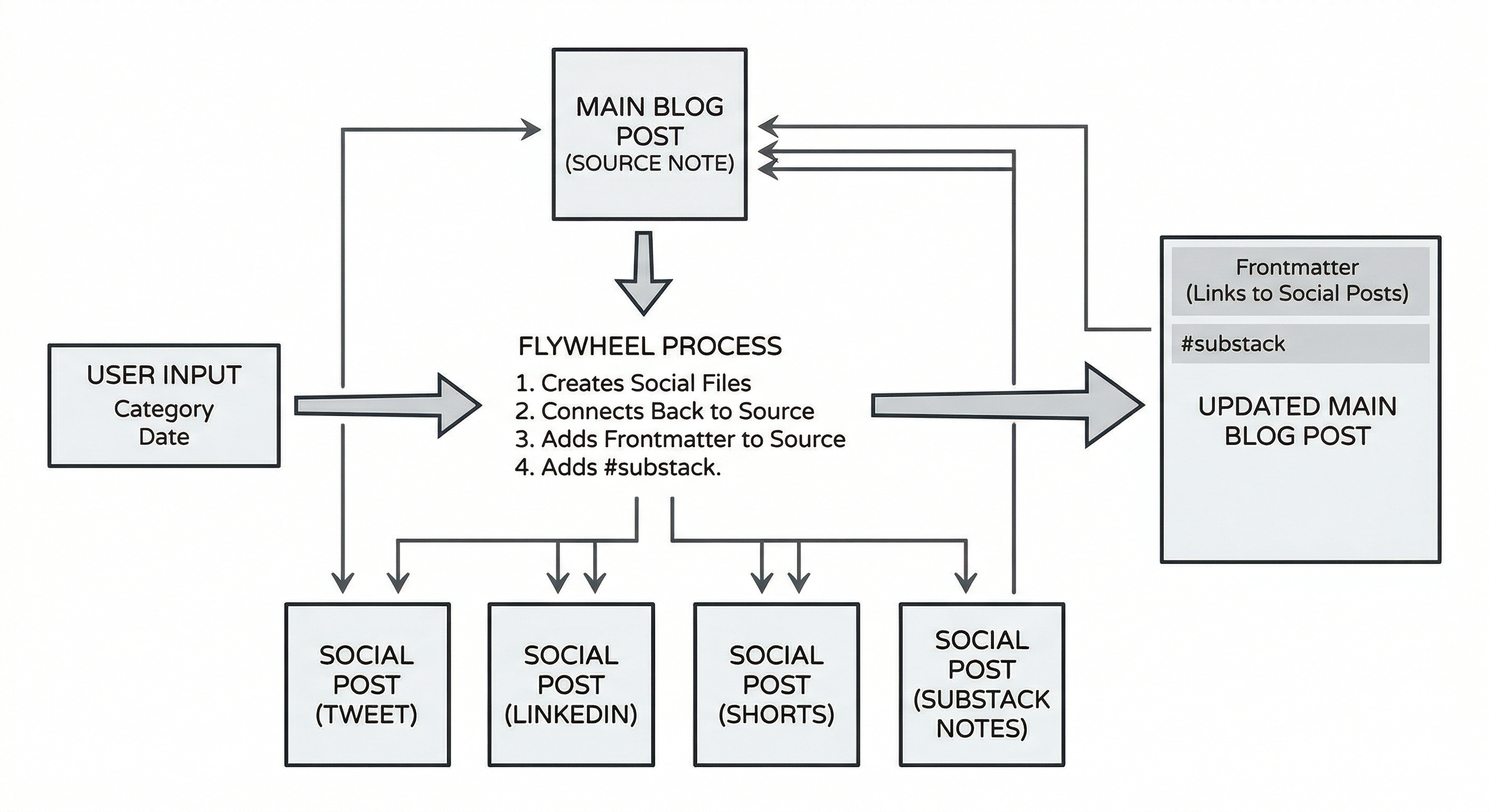 Substack and Tweets are output factories where drafts get assembled. AccuKnox holds project-specific work.