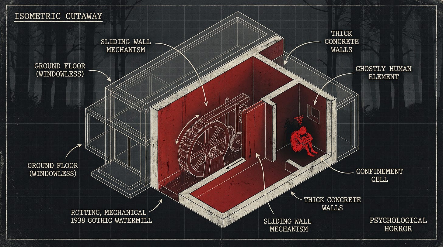 File 5 is the novel’s “Architectural Uncanny” thesis in its purest form. A modern house sits on modern land. Inside it, through walls too thick to be structurally necessary, is a machine that killed a woman nearly a century ago. The house did not demolish its own history. It enveloped it.