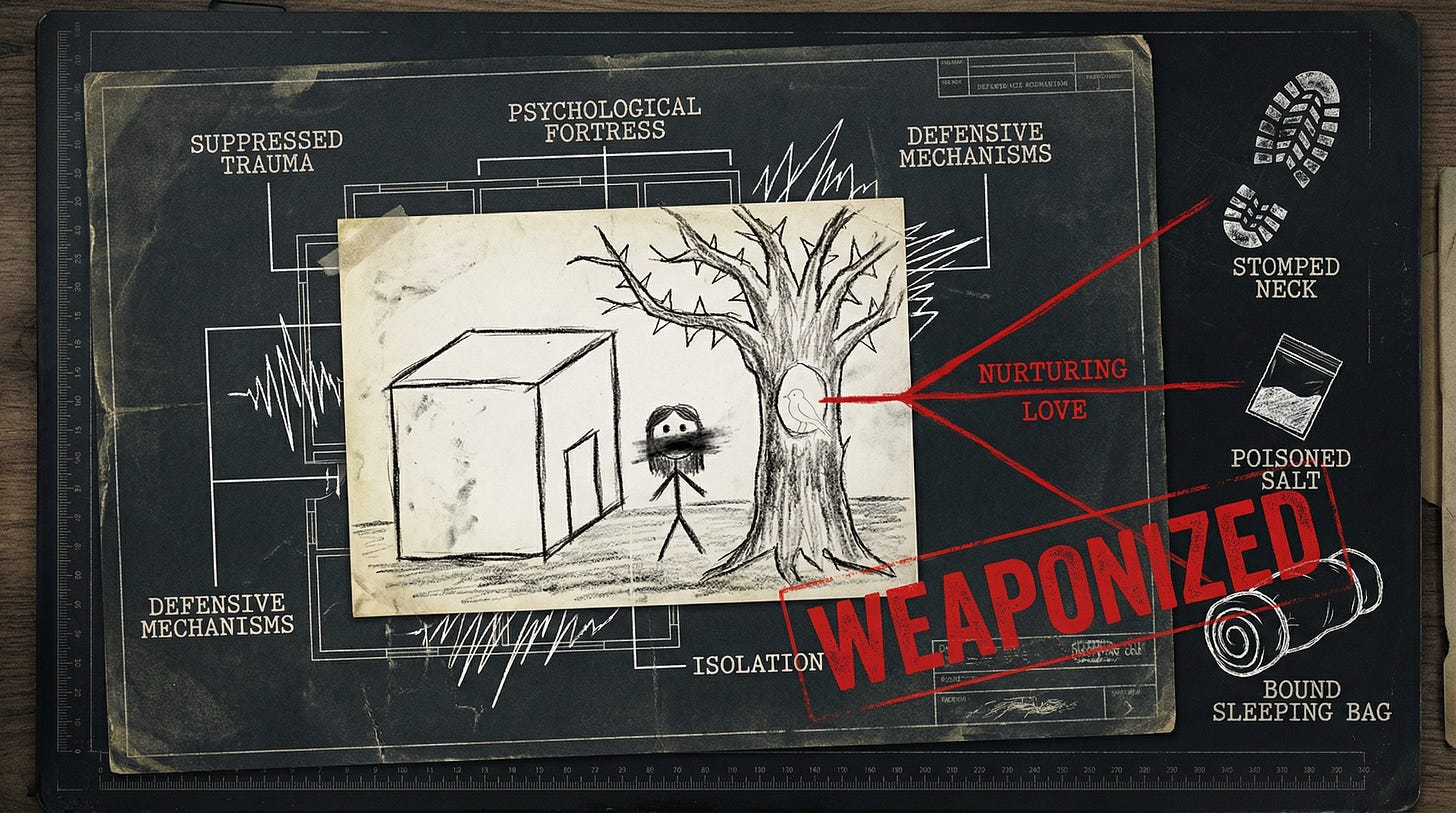 In the aftermath of Naomi’s arrest, Dr. Hagio realizes her diagnosis of “Little A” was wrong. Not about the smudging or the doorless house or the thorny branches. About the bird. She assumed the bird represented the capacity for nurturing, a force that would soften the aggression. She had the causality backwards. The thorns do not sit beside the bird by accident. The thorns exist to protect the bird. Naomi’s maternal love is not the thing that redeems her violence. It is the engine of it.