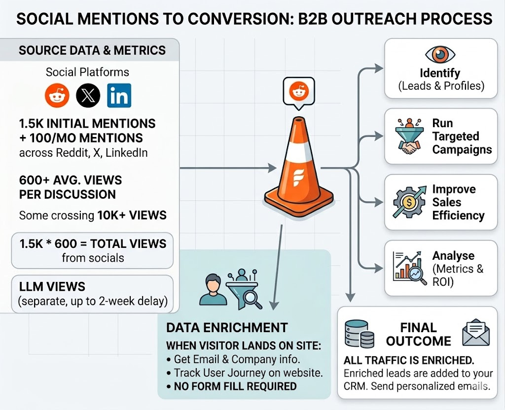 Here is where most social listening efforts fall apart. They generate engagement but never connect it to revenue. The gap between an anonymous Reddit username and a qualified opportunity in your CRM feels impossibly wide. It is not.