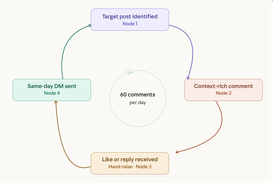 70 decision-makers a week, 60 targeted comments a day, and a DM cadence that converts.