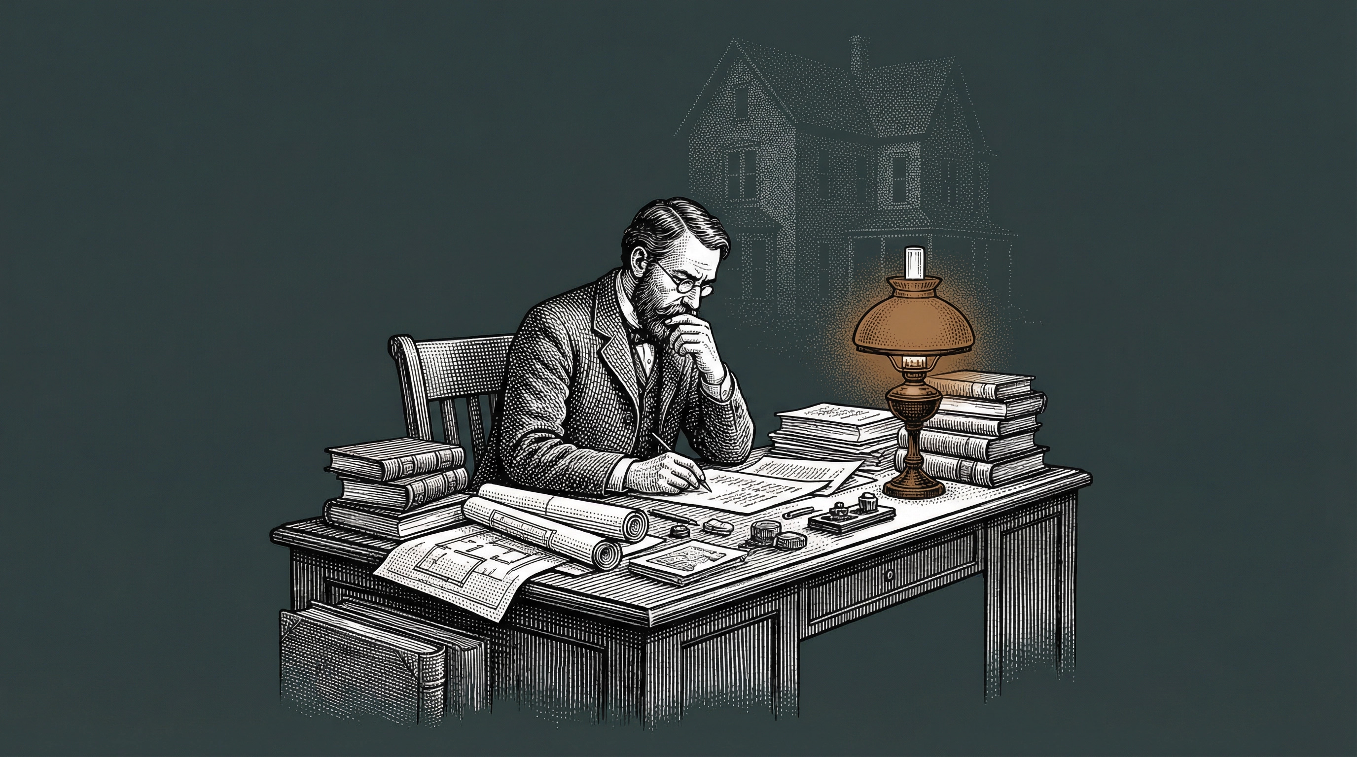 In Strange Houses and Strange Buildings, the Author is the field agent. He visits houses, interviews witnesses, takes notes. His friend Kurihara, an architectural draughtsman, sits at a desk and reads floor plans. Kurihara never needs to visit. He constructs complete, terrifying hypotheses — murder scenarios, hidden rooms, cult headquarters — entirely from geometric anomalies on 2D blueprints.